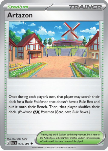 Carta: Artazon es una carta de estadio de la expansión SV: Paldean Fates (PAF). Destaca por representar la vibrante ciudad de Artazon, conocida por su conexión con la naturaleza y sus coloridos paisajes.