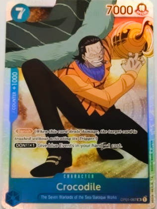 Edición: Esta carta proviene de Romance Dawn (OP01), la primera expansión de cartas del One Piece Trading Card Game. OP01 establece los cimientos del juego, presentando a personajes clave de la serie, incluidas sus primeras grandes batallas y eventos. Crocodile, como uno de los principales villanos de los primeros arcos, tiene una presencia importante en esta edición inicial.