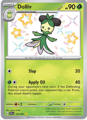 Edición: SV: Paldean Fates (PAF), una expansión que introduce a Dolliv junto con otras cartas que exploran temas de la región de Paldea y sus criaturas únicas.
