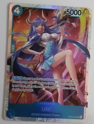 Arte: En esta carta, Ulti es mostrada con su característica expresión feroz, destacando su actitud desafiante y su poder. La ilustración resalta su agresividad y fuerza, representando fielmente su rol como uno de los guerreros más temibles de los Tobi Roppo.